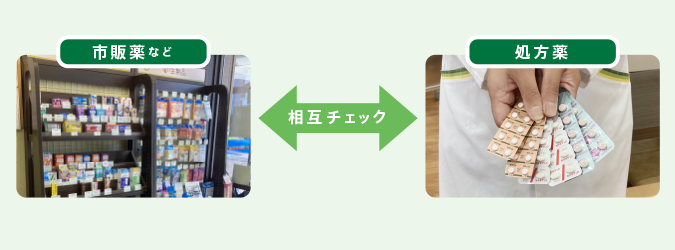 患者様が常用している他院からの処方薬、市販薬、サプリメントと、処方薬の飲み合わせの確認を行います。
