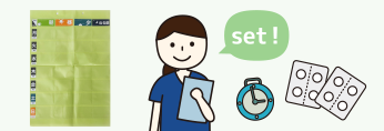 お薬カレンダーに、服薬タイミング毎にセットします。