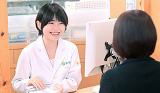 店舗を居心地の良いコミュニケーション空間にすることで、処方せんを持たないお客さまが気軽に相談に来られるお店づくりを進めています。